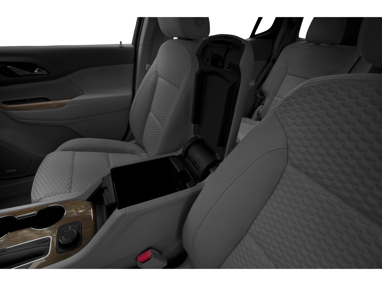 - Console, front center with 2 cup holders and storage, includes rear storage drawer