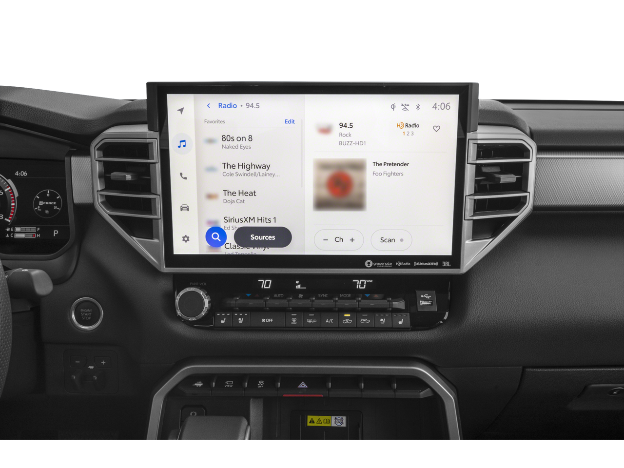 - Radio: AM/FM -inc: 14-inch touchscreen audio multimedia, Android Auto and Apple CarPlay compatible and SiriusXM w/3-month platinum plan trial subscription, See toyota.com/audio-multimedia for details, Connected services - Safety Connect w/up to 10-year trial, remote connect w/1-year trial, drive connect w/1-year trial, service connect w/up to 10-year trial, Wi-Fi connect w/up to 3 GB within 1-month trial, See toyota.com/connected-services for details